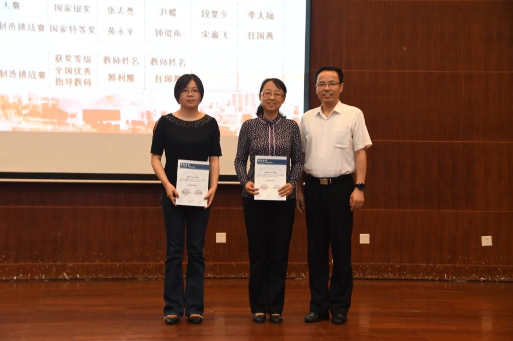 活动伊始,全体师生共唱国歌,表达对伟大祖国的无限热爱。施金良、张琪及电气工程学院党政领导分别为在第十届蓝桥杯、2019年全国电子设计大赛、“西门子”杯等创新创业比赛中获得市级奖项及国家级奖项的同学和优秀指导教师颁奖。